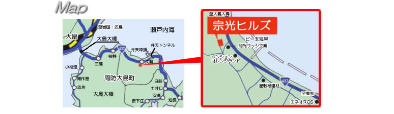 | 交通 | 山陽本線、大畠駅より約12km(車10分)・西宗光バス停より徒歩2分 | |